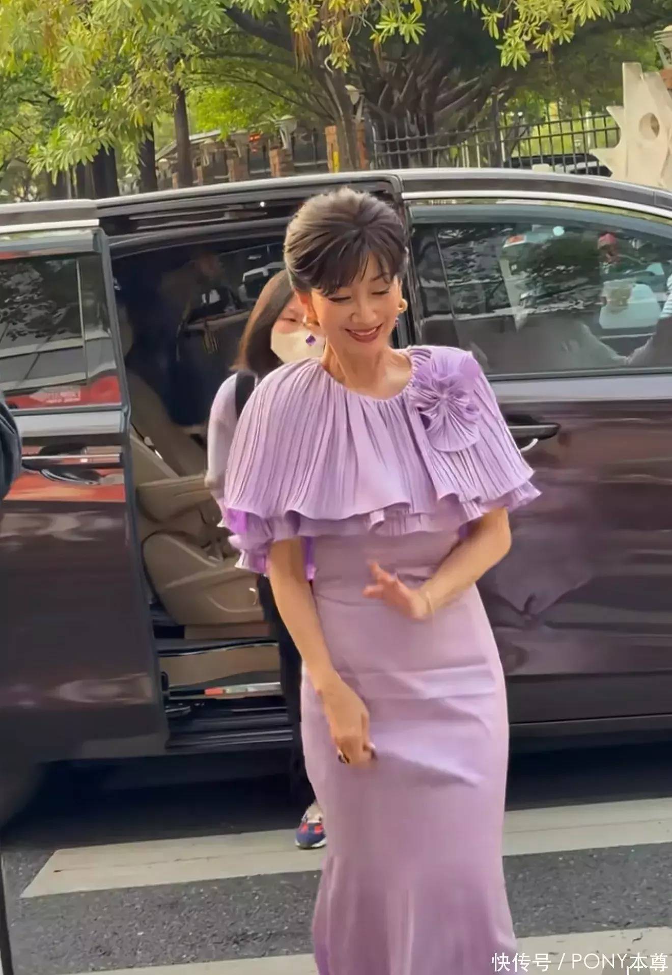 赵雅芝的穿搭也很善于“运用色彩”!比如紫色短披风拼接长裙,裙身上半身设计可以遮住手臂曲线,看起来浪漫高贵!