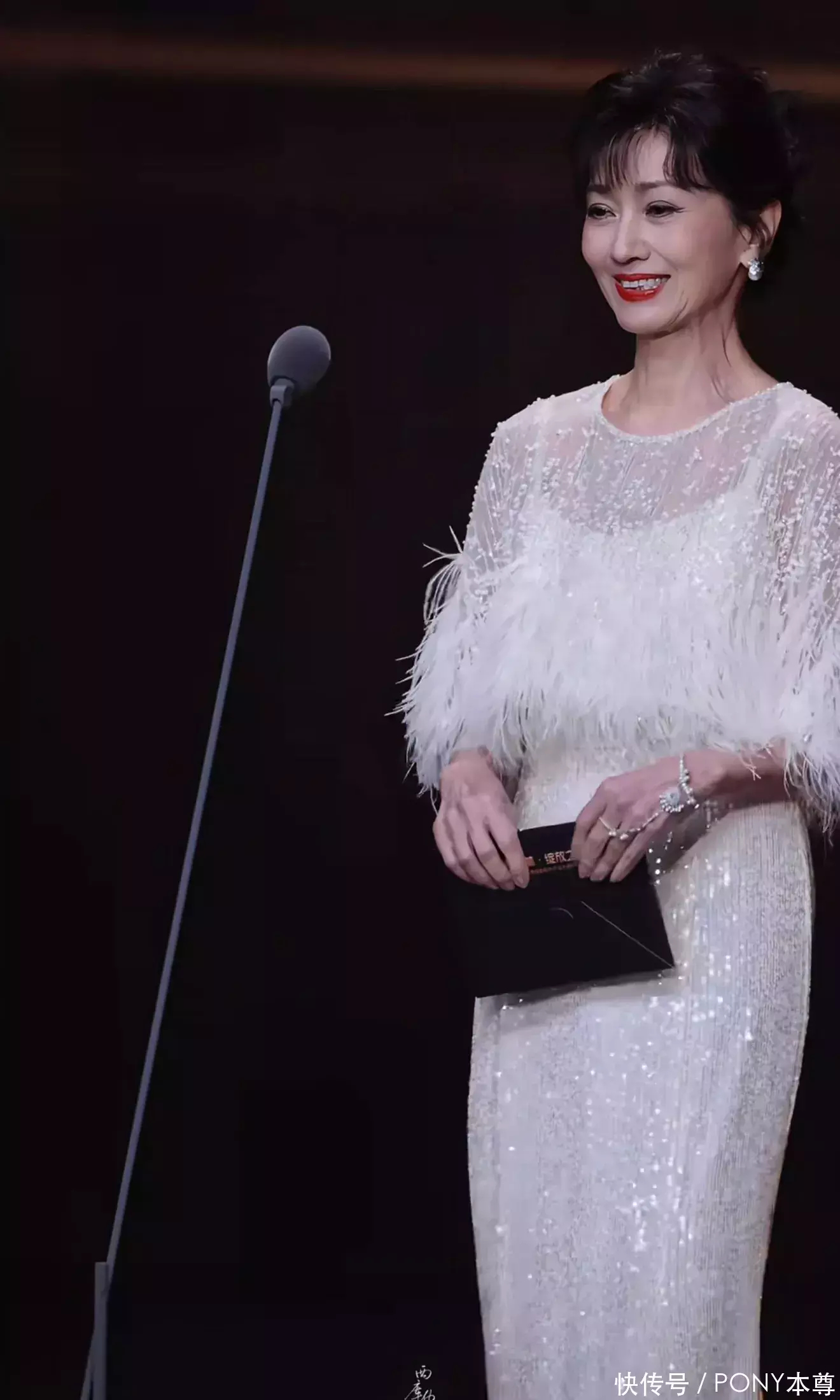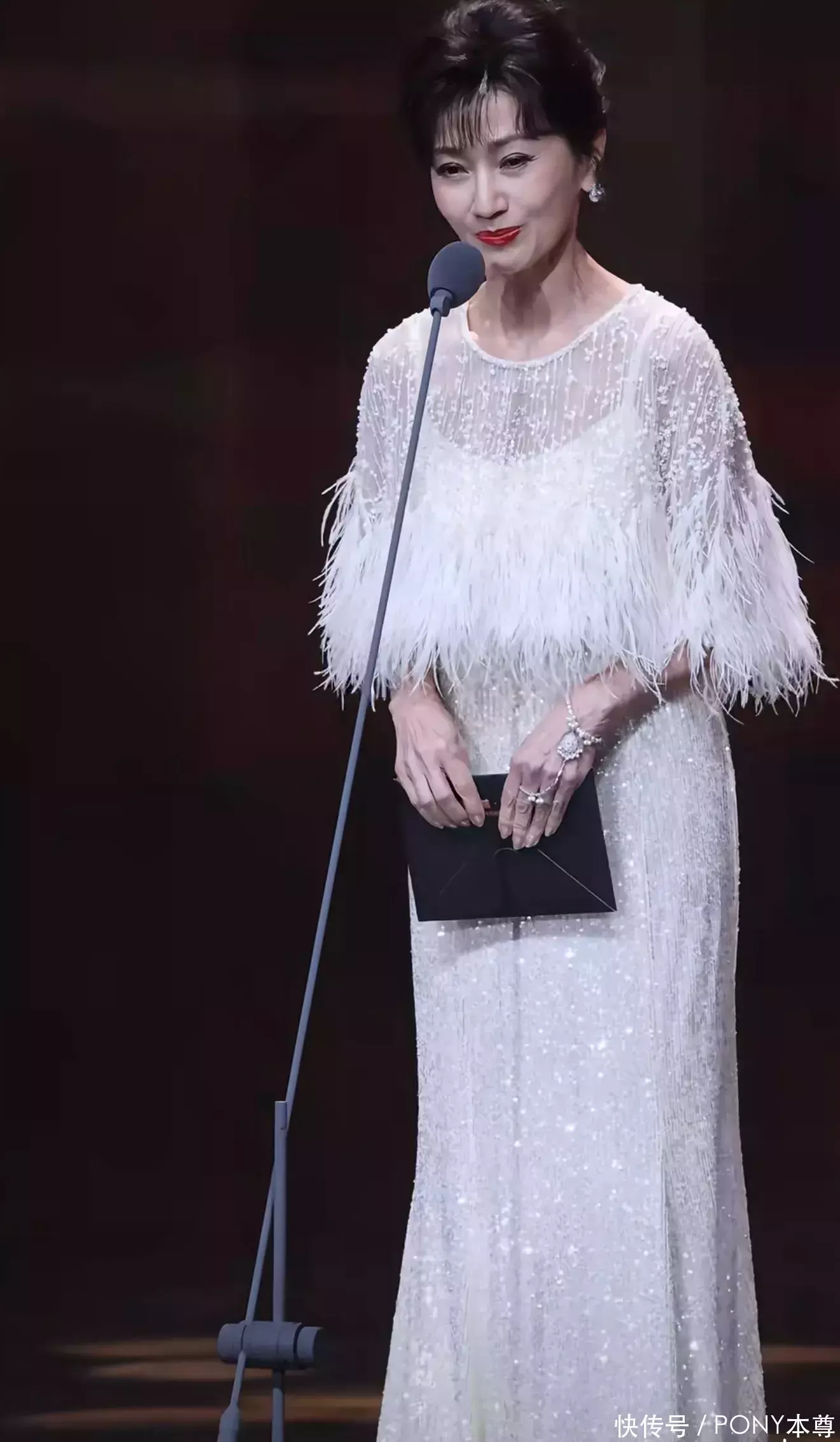 这也让她穿礼服时,尽显好仪态!比如最近参加活动的她,身穿白色羽毛装饰的罩衫搭配白色亮片吊带长裙,高级感满满!